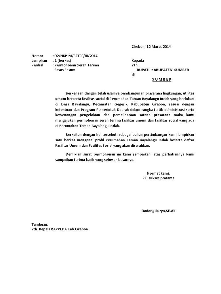 Surat Permohonan Serah Terima Fasos Fasum Pdf